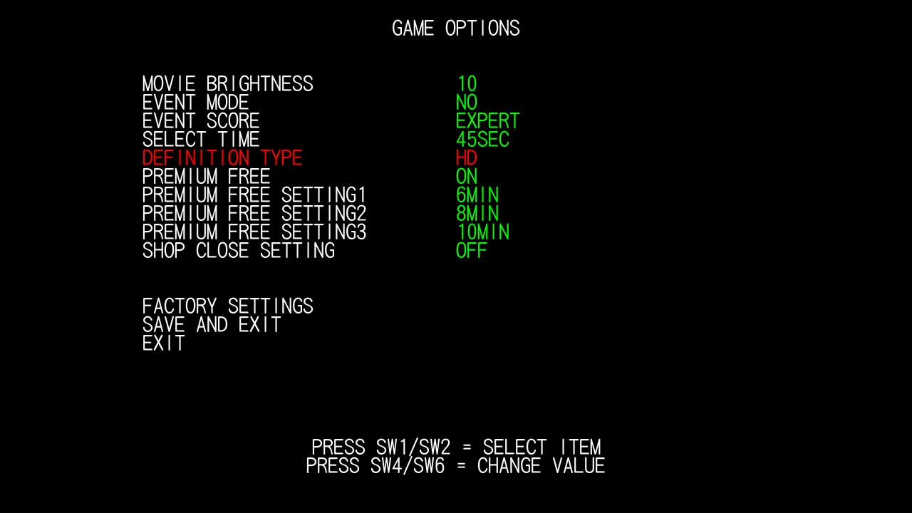 Simply hit save and exit and leave, the clock will be saved. Then, back in the service menu, go up to GAME OPTIONS