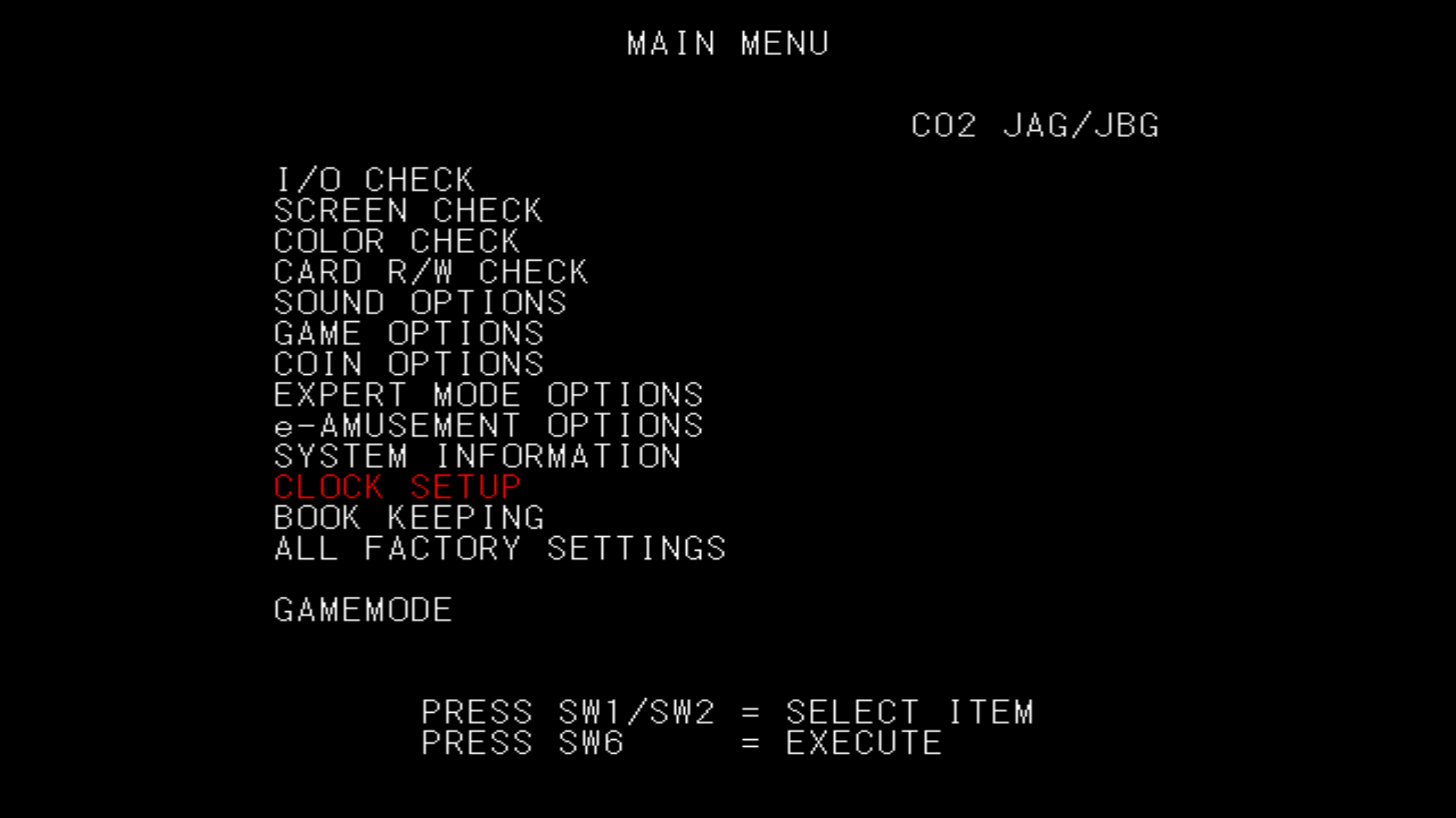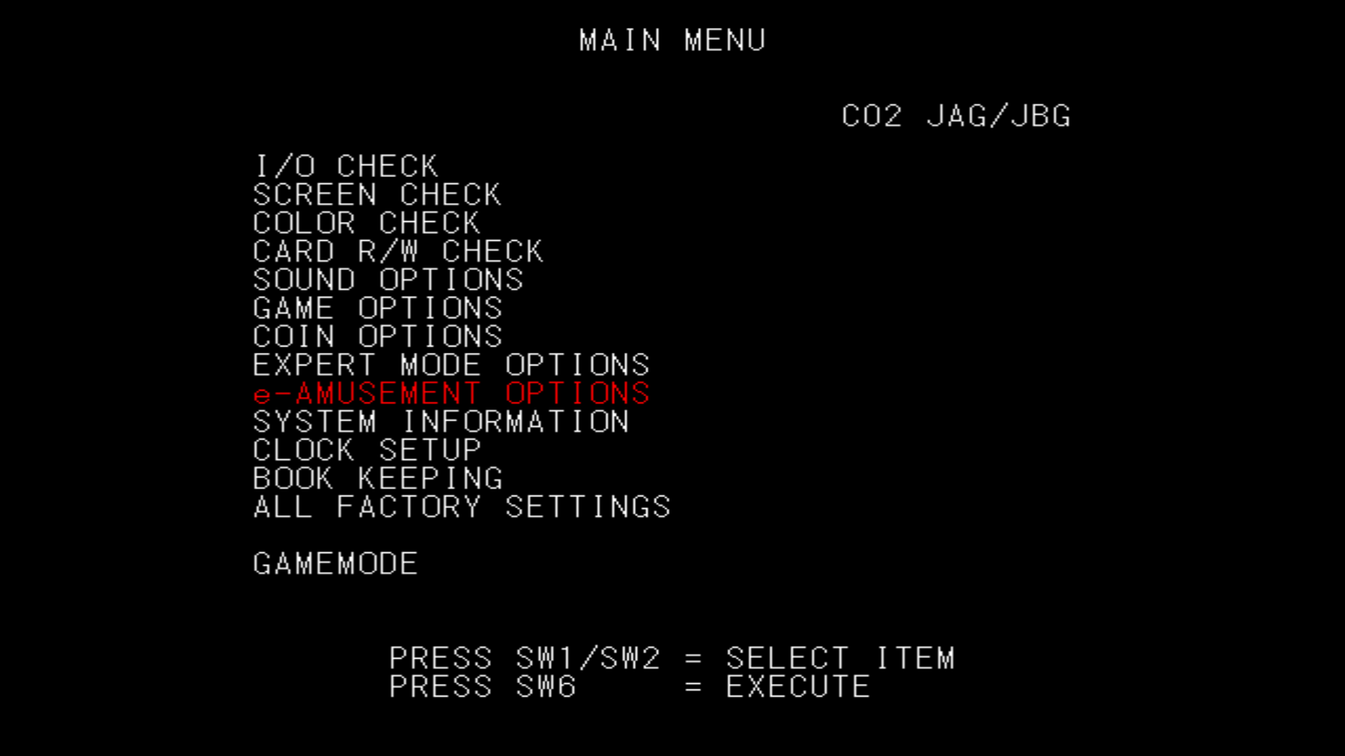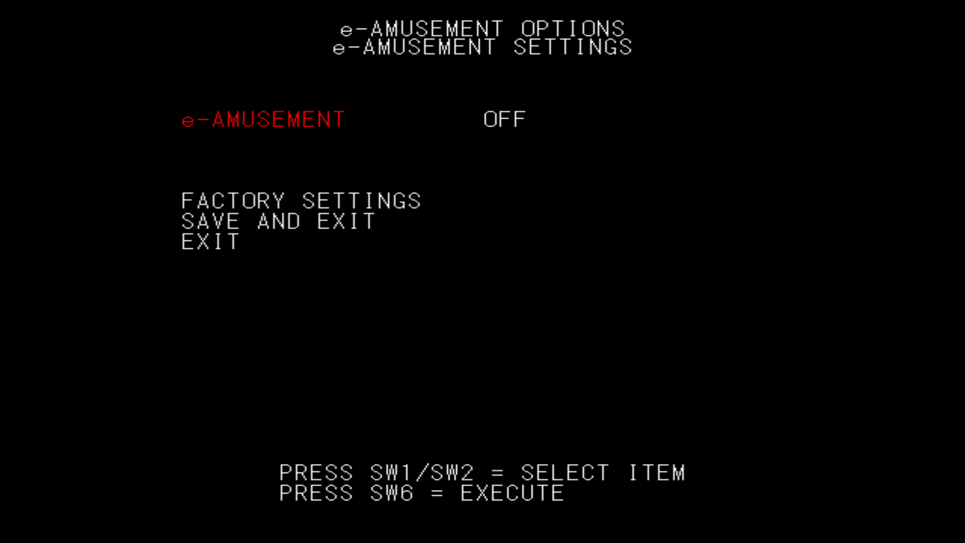 From the service menu, go to e-AMUSEMENT OPTIONS then e-AMUSEMENT SETTINGS.