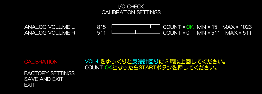 VOL-R Left) until the line saysCOUNT = OKthen pressStart. - Slowly turn your RIGHT knob clockwise (