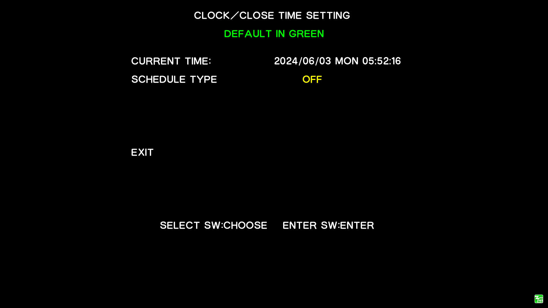 Using F1 arrow keys and Enter navigate to GAME OPTIONS -> CLOCK/CLOSE TIME SETTING -> SCHEDULE TYPE.
