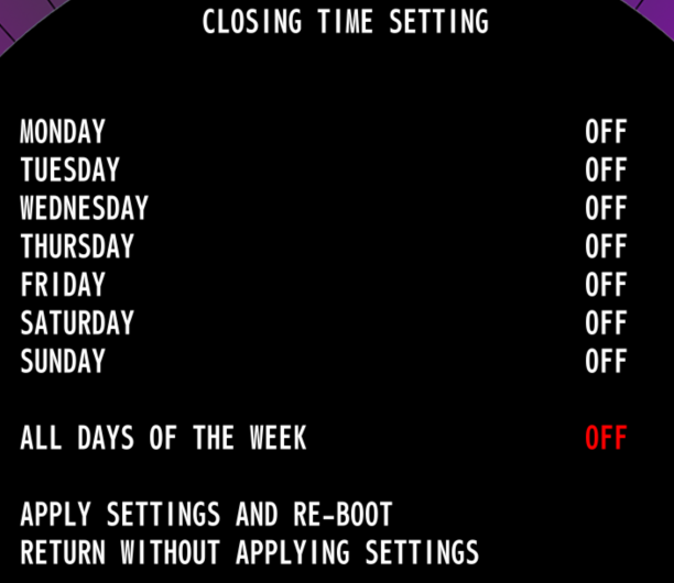 Navigate to CLOSING TIME SETTINGS.